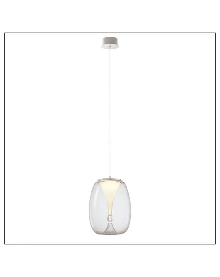 Sospensioni per interni dotate di LED SMD. Ornamento centrale in acrilico, struttura in metallo cromato, diffusore in vetro soffiato nero opaco/sfumato fumè o cromo/trasparente. Disponibile in 3 diverse grandezze.