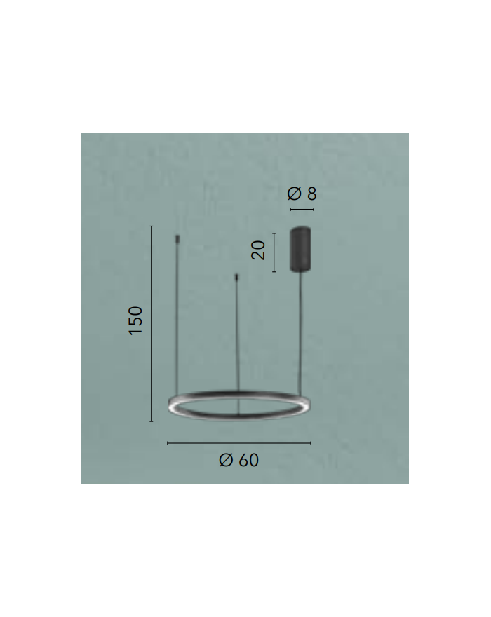 Sospensione con struttura dalla forma semi-circolare in metallo verniciato nero con rosone in metallo nero e cavi regolabili in acciaio. Sistema cambio colore temperatura con interruttore.