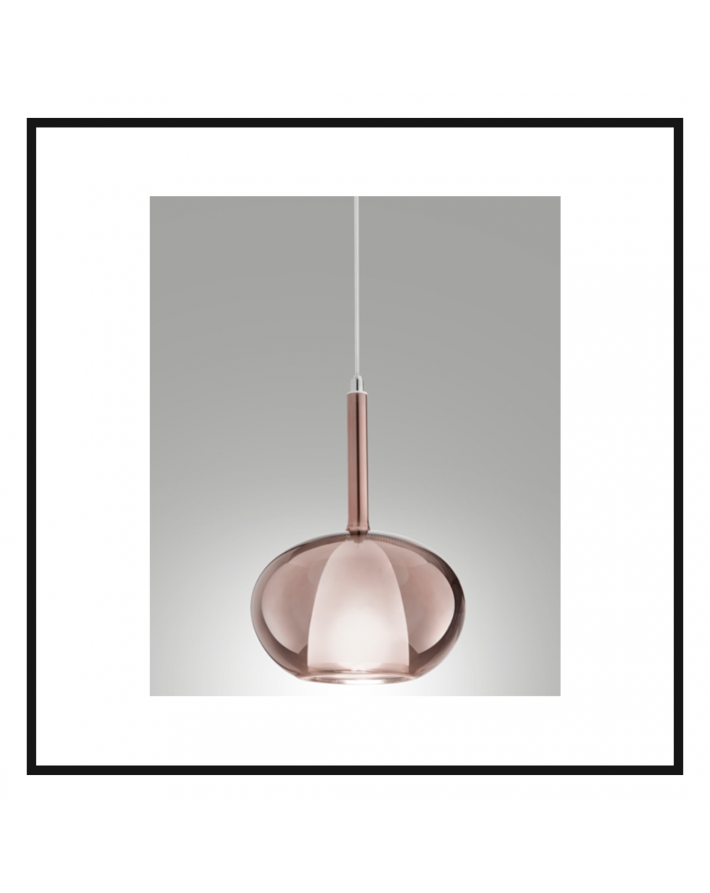 Il diffusore della collezione Edison presenta un doppio vetro: quello interno è bianco opalino e quello esterno in vetro soffiato è colorato, trasparente o specchiato.