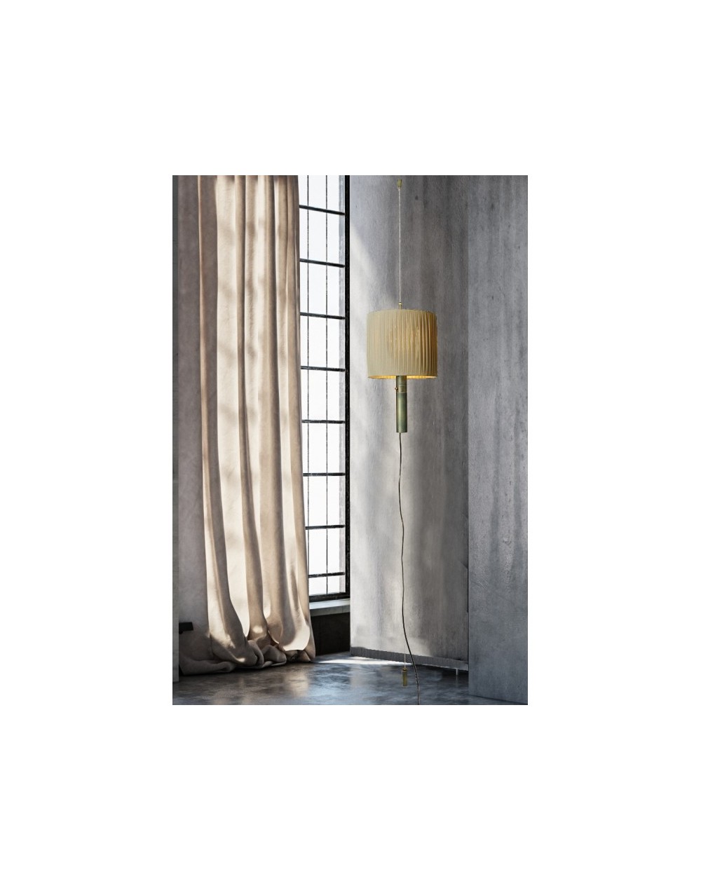 Piantana sospesa regolabile 1 luce in struttura d'acciaio verde sfumato e paralume in tessuto