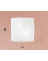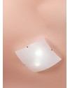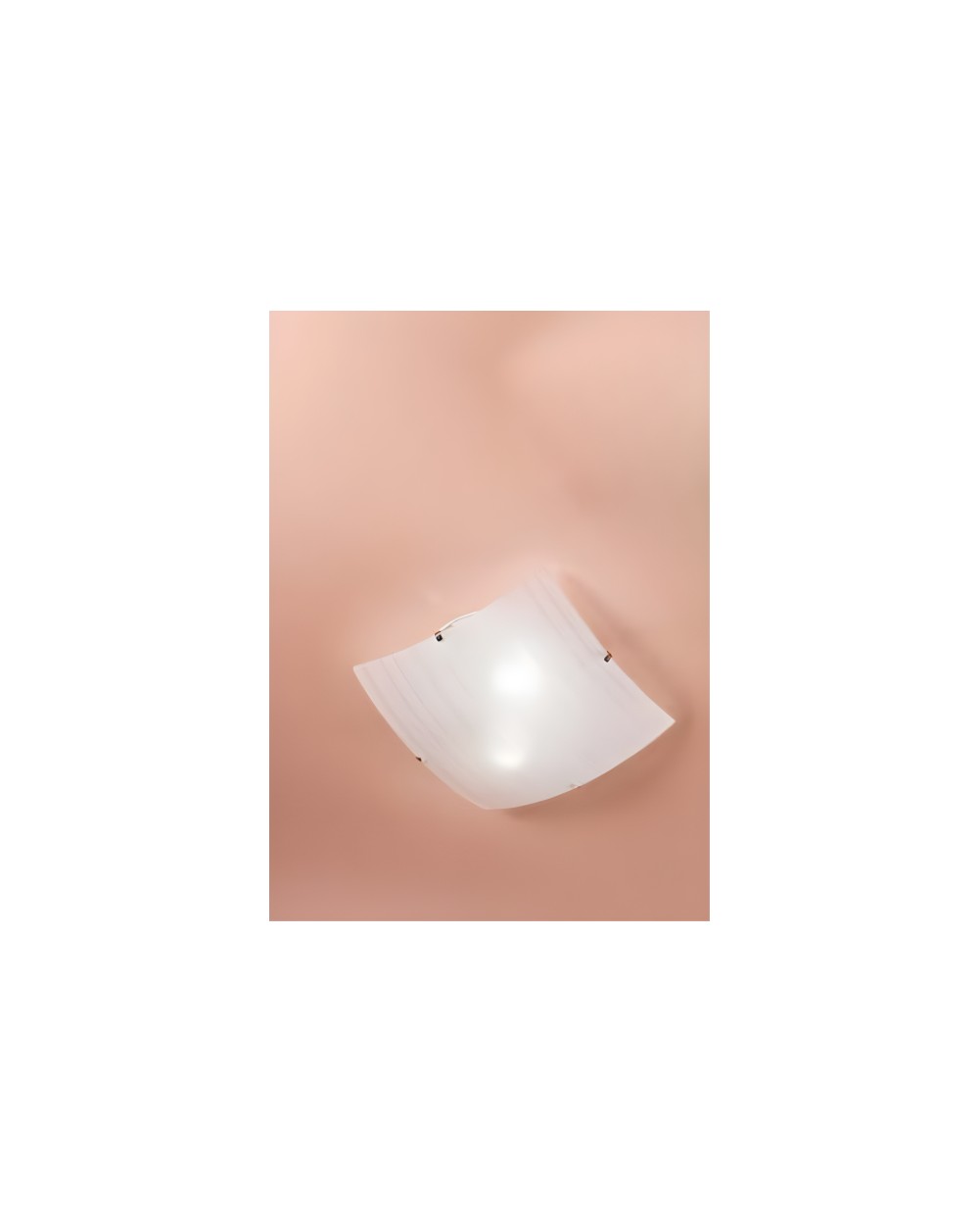 Plafoniera in vetro lastra bianco satinato con decorazioni e ganci in cromo.