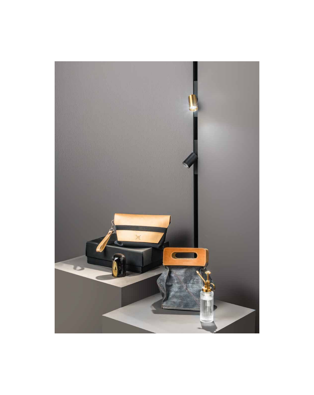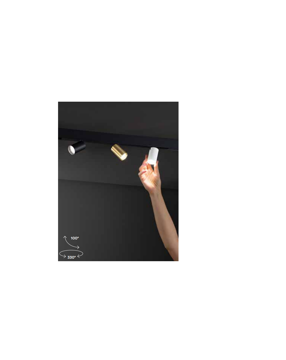Proiettore a binario con luce spot orientabile per sistema Leonardo con struttura in alluminio pressofuso