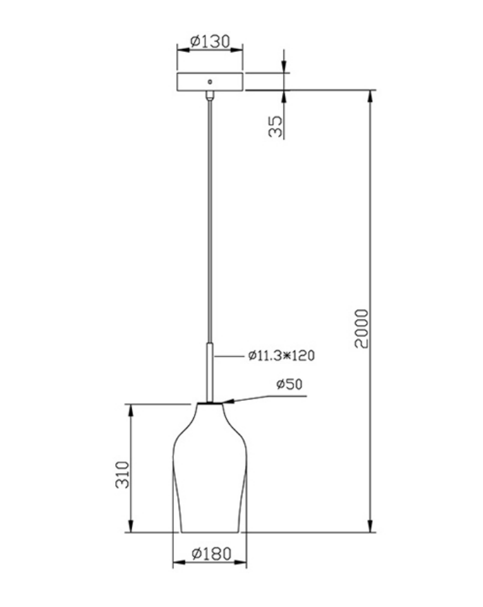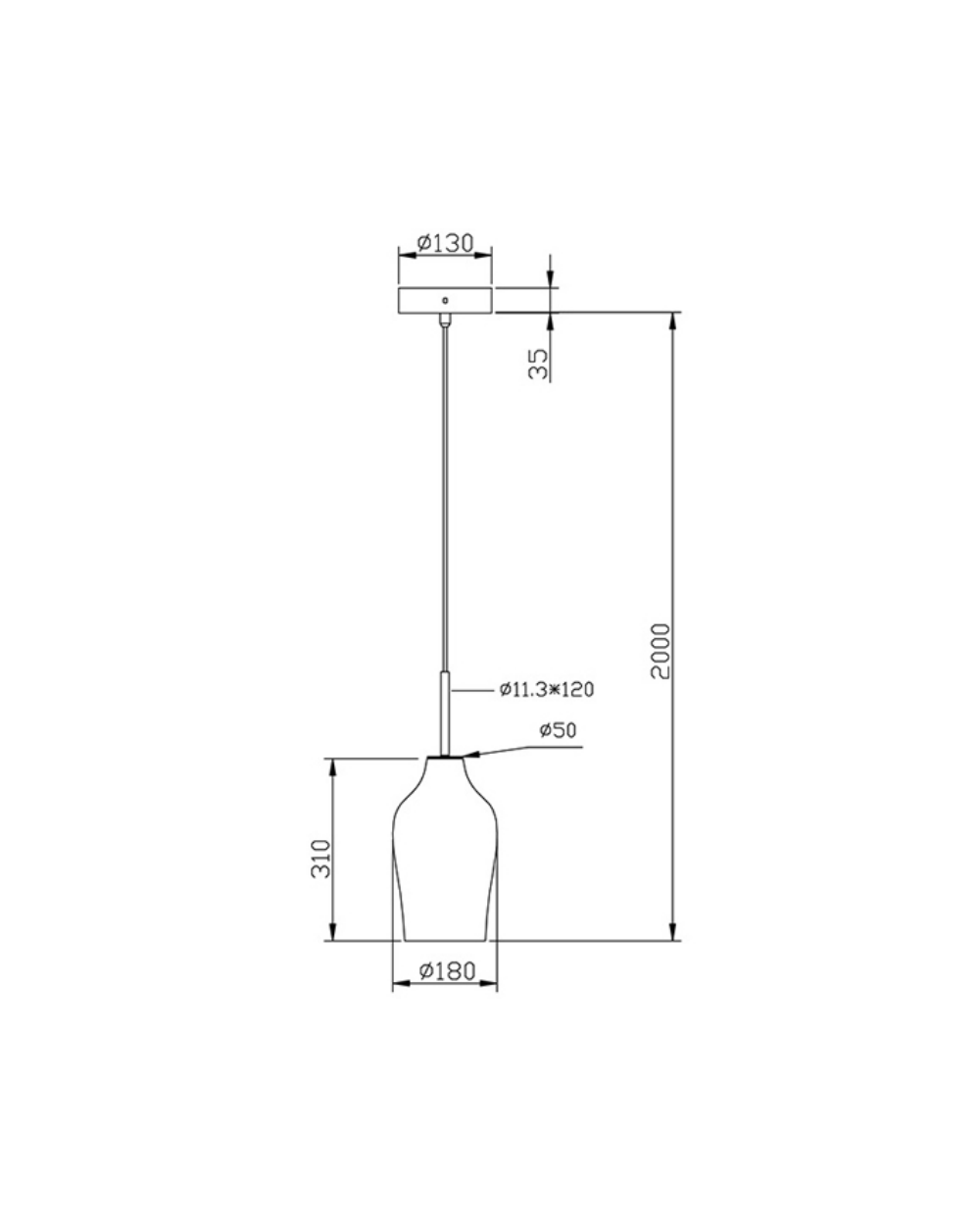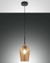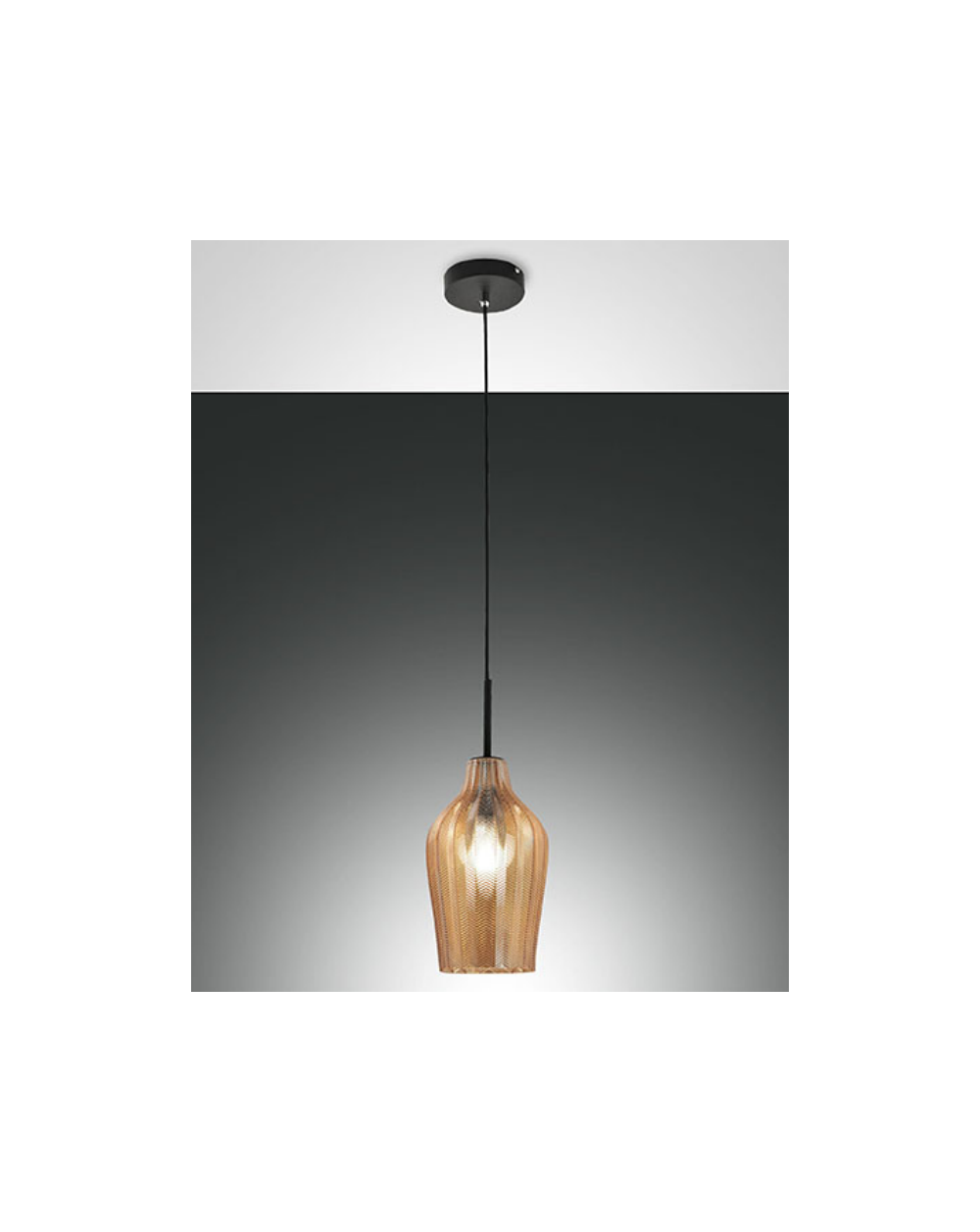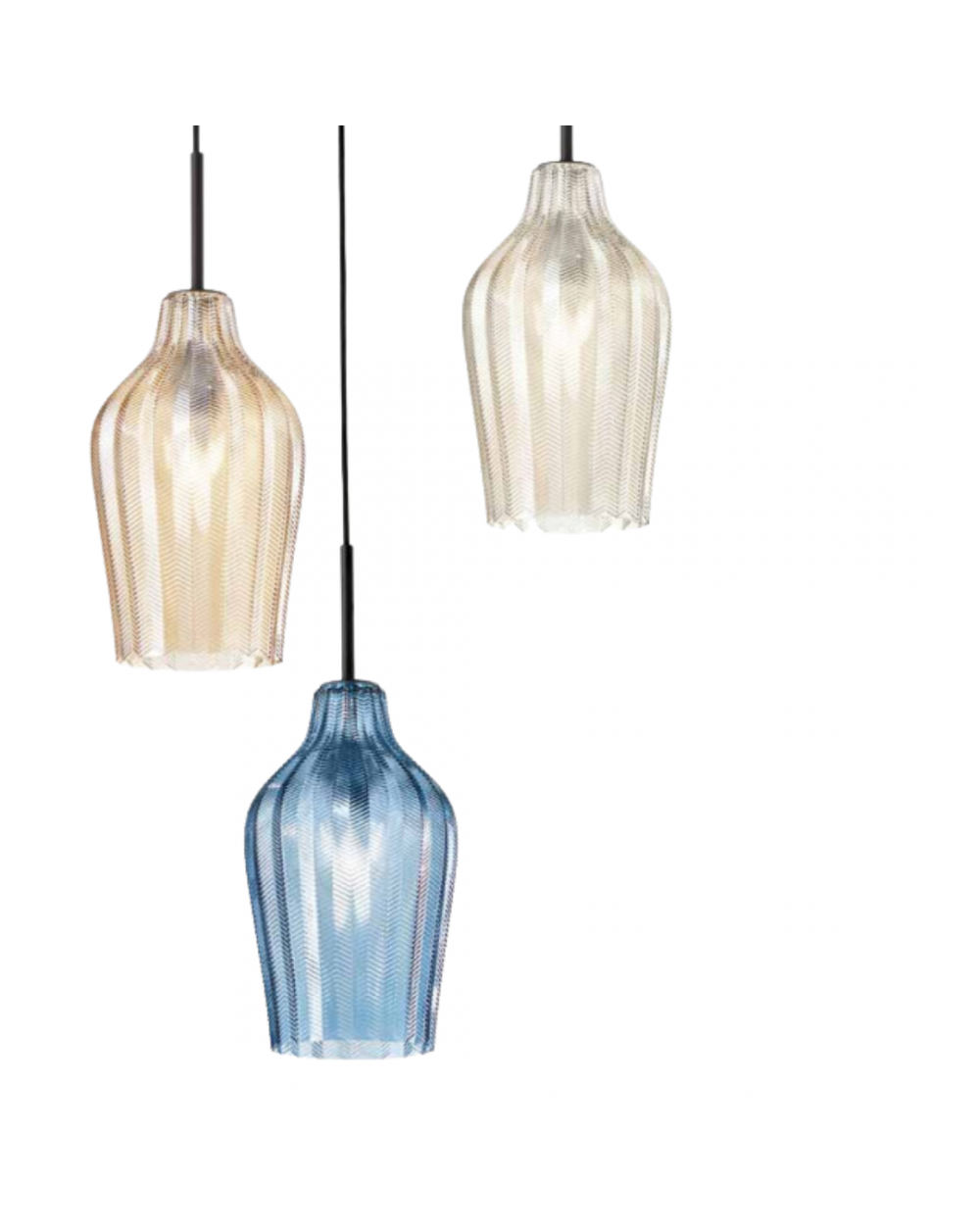Sospensione 1 luce con struttura in metallo e diffusore in vetro soffiato. Disponibile ambra, azzurro e champagne.