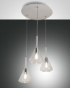 Sospensione a tre luci con struttura in metallo e vetri borosilicati: Disponibile in ambra, fumè o trasparente.