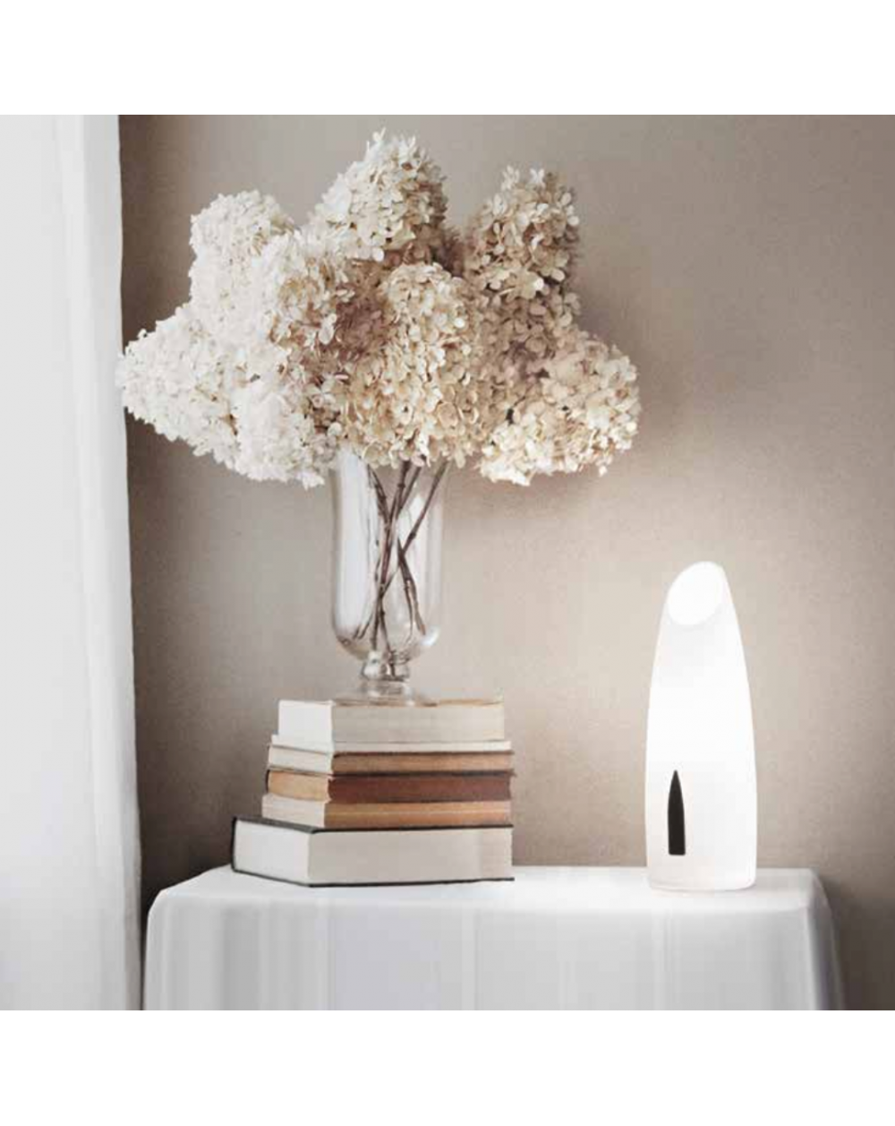 Lampada da tavolo bianca in vetro soffiato con regolazione luce al tocco.