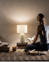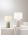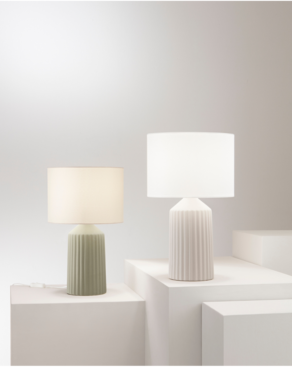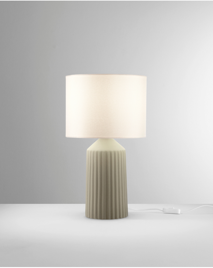 Lampada da tavolo con base in ceramica ,disponibile in due varianti di colore: Verde o Beige. Paralume in tessuto