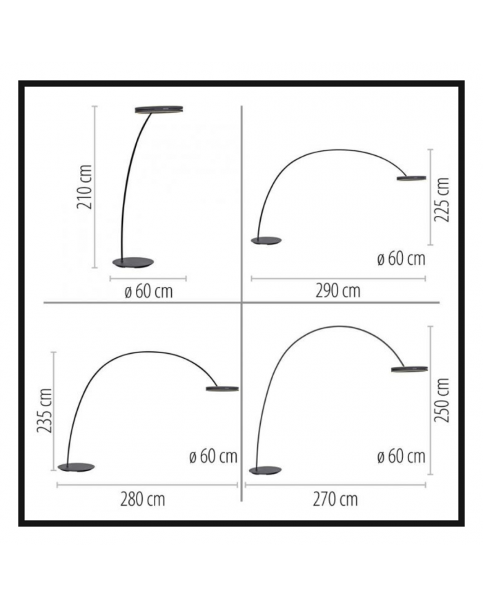 Possibilità di regolarle su 4 diverse altezza e di trasformarla in piantana ad arco