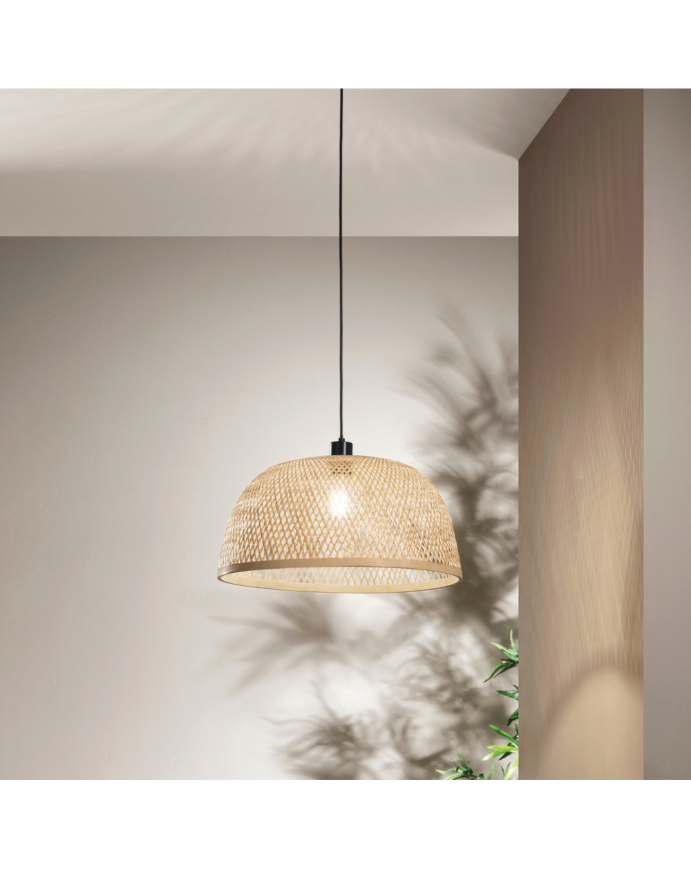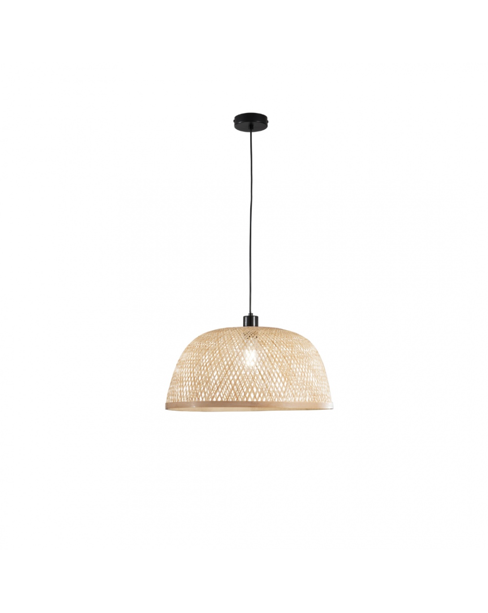 Sospensione 1 luce con struttura in metallo e paralume in bambù.