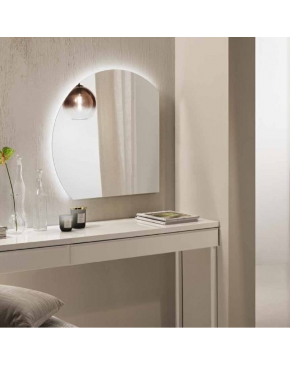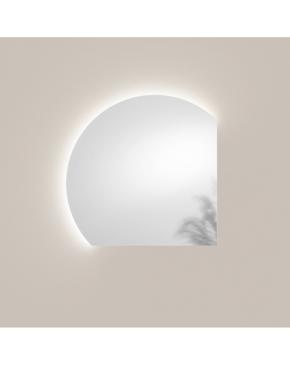 Specchio da 4mm, argento senza rame. forma rotonda con due tagli a 90°. Doppia installazione. Telaio in PC. Pellicola antideflagrante sul retro dello specchio. Driver incluso. CCT 3000K/4000K con interruttore sul retro. Diverse misure disponibili.
