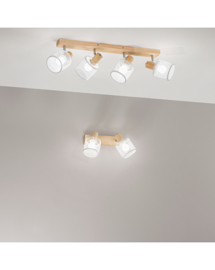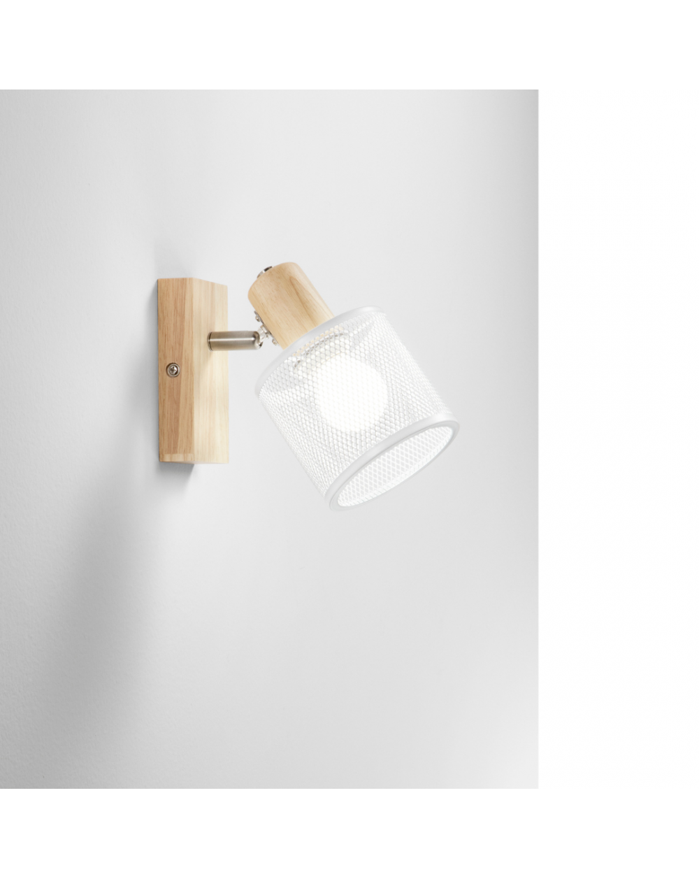 Applique realizzata con struttura in legno e spot direzionabile in metallo traforato.