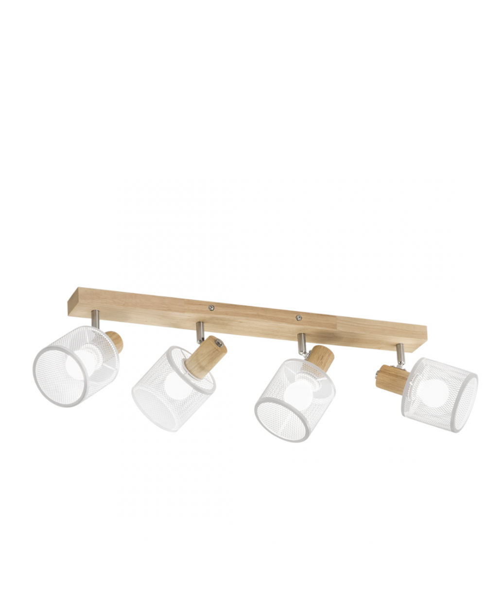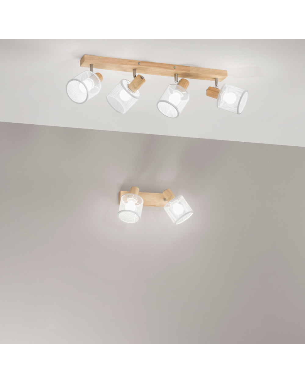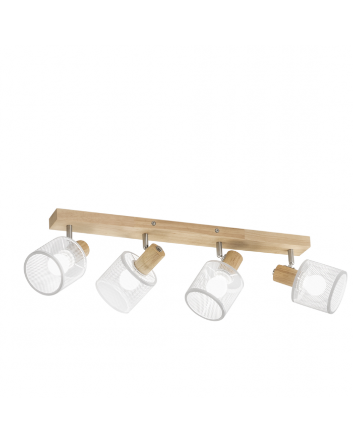 Applique/Plafoniera realizzata con struttura in legno e spot Direzionabile in metallo traforato.