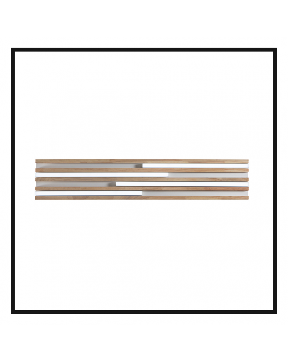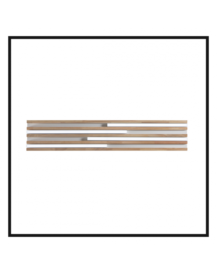 Disponibile in due varianti cromatiche: legno d'acero su base bianca e legno rovere Teak su base nera