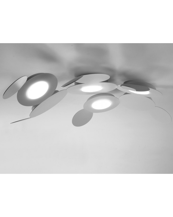 Lampada da parete/plafoniera 4 luci in metallo e diffusore circolare. Disponibile in 4 diverse varianti. Made in Italy.