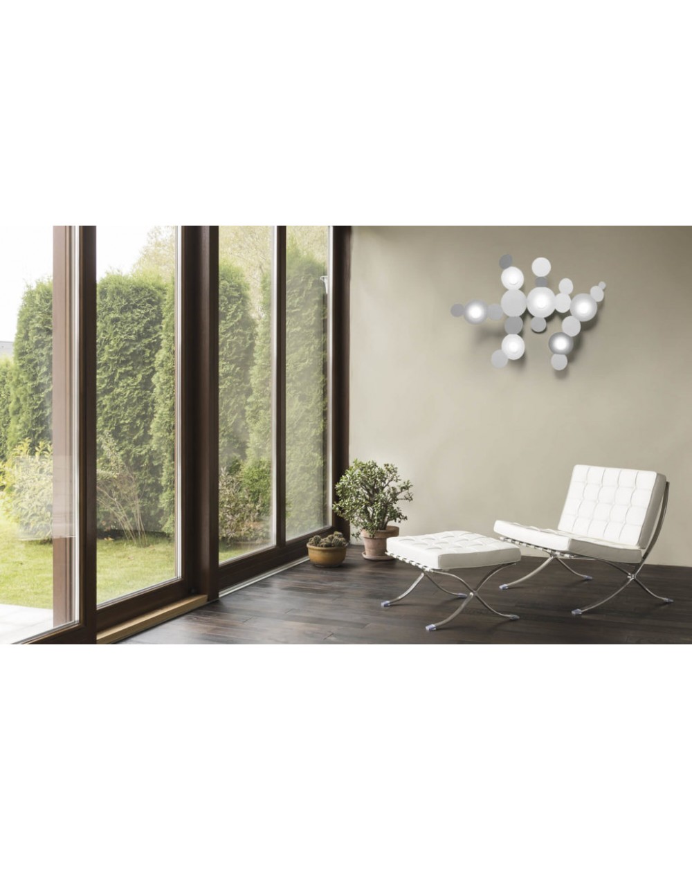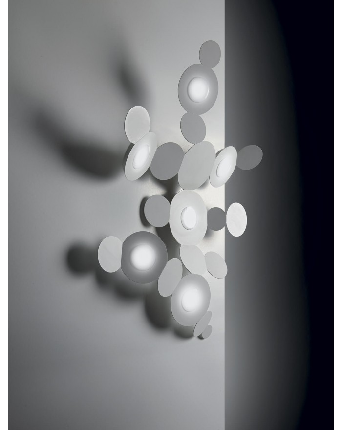 Lampada da parete/plafoniera 6 luci in metallo e diffusore circolare. Disponibile in 4 diverse varianti. Made in Italy.