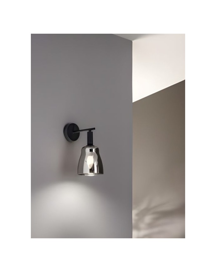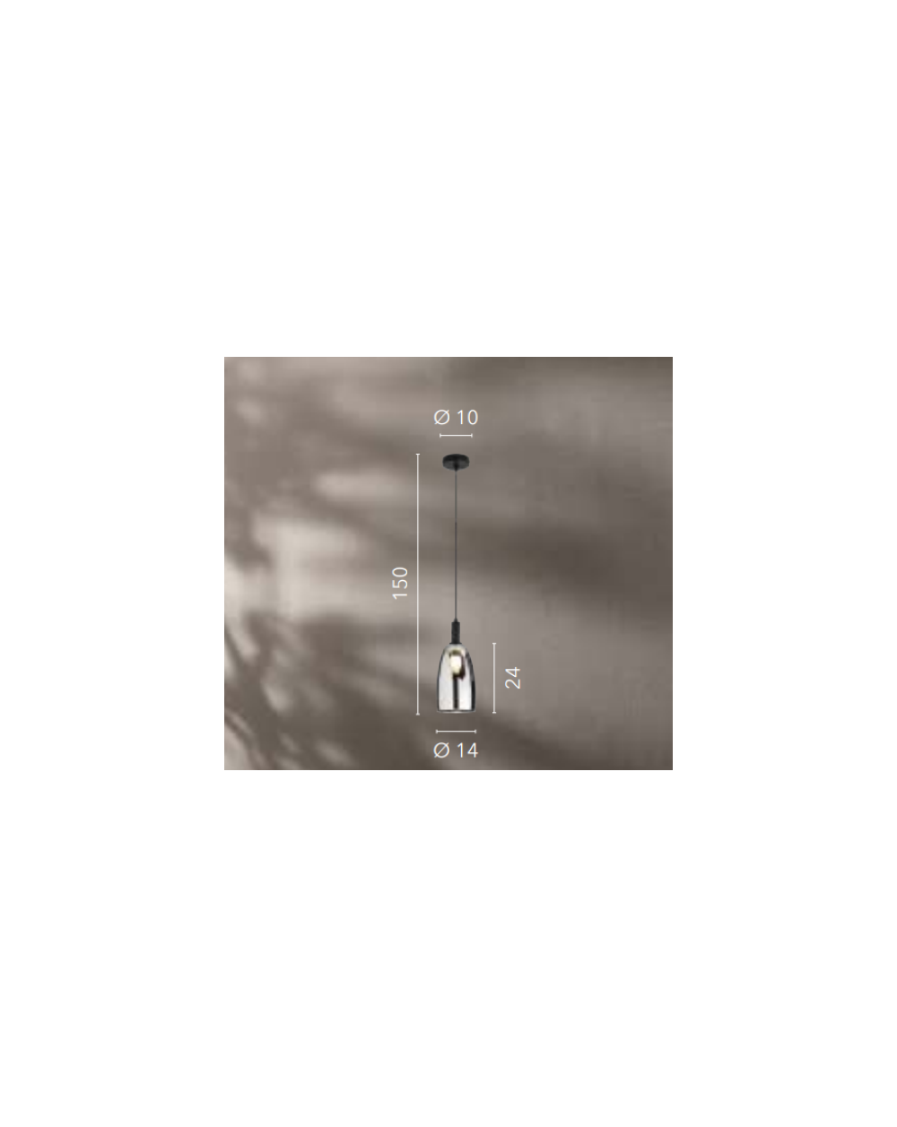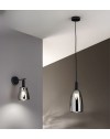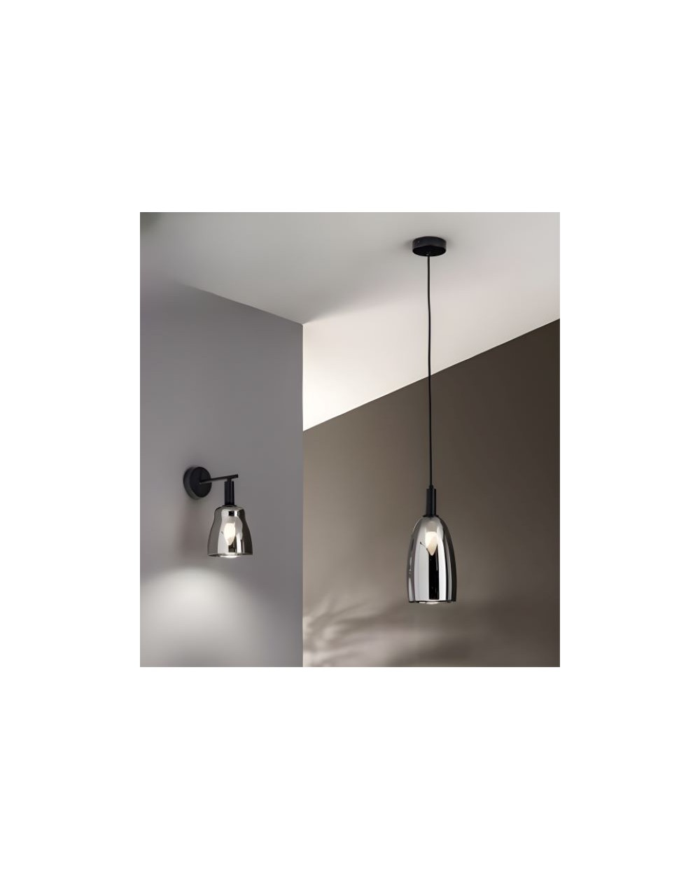 Sospensione realizzata con struttura in nero opaco e diffusore finemente lavorato in vetro cromo.