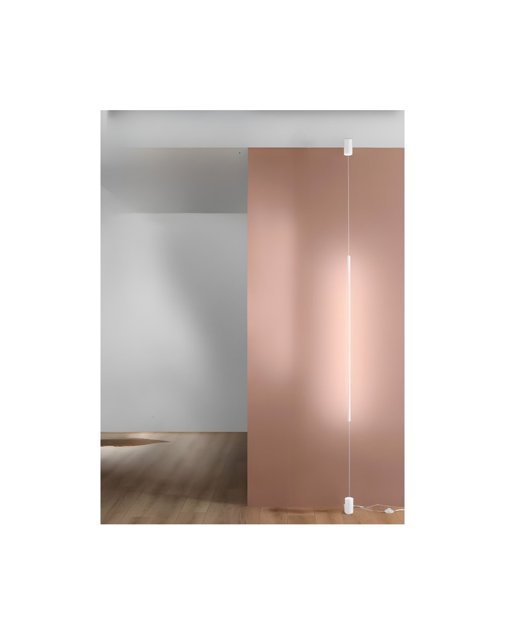 Piantana a sospensione in metallo nelle versioni bianca, nera ed oro. Dotata di supporti in acciaio per regolarne posizionamento ed altezza. Pedaliera per accensione e switch per sistema cambio colore temperatura.
