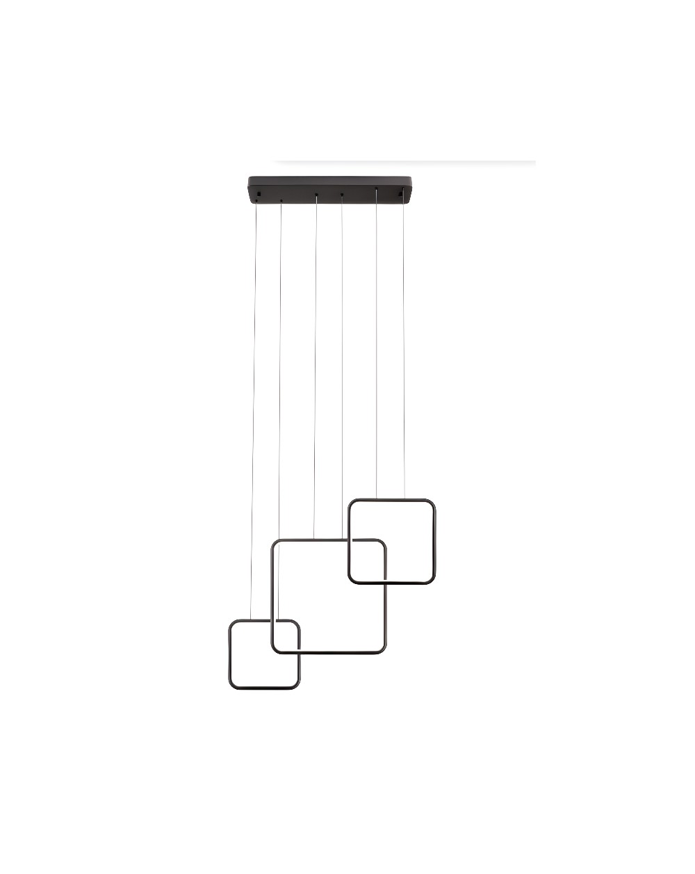 Sospensione con SMD LED, struttura in alluminio e metallo verniciato a polveri bianco opaco o nero opaco, diffusore in silicone opalino bianco.