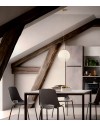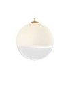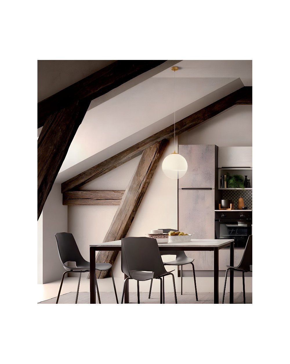 Sospensione a una luce con struttura in metallo, finitura oro opaco con diffusore in vetro soffiato sfumato opale o struttura in metallo cromato con diffusore in vetro soffiato sfumato fumè.