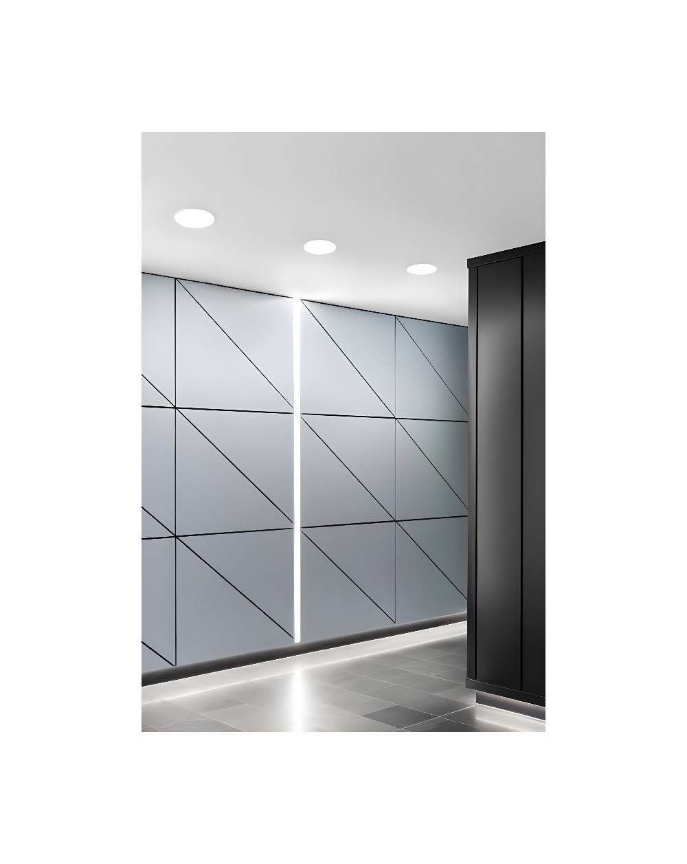 Faretto da incasso con struttura in alluminio e diffusore in acrilico bianco opaco.