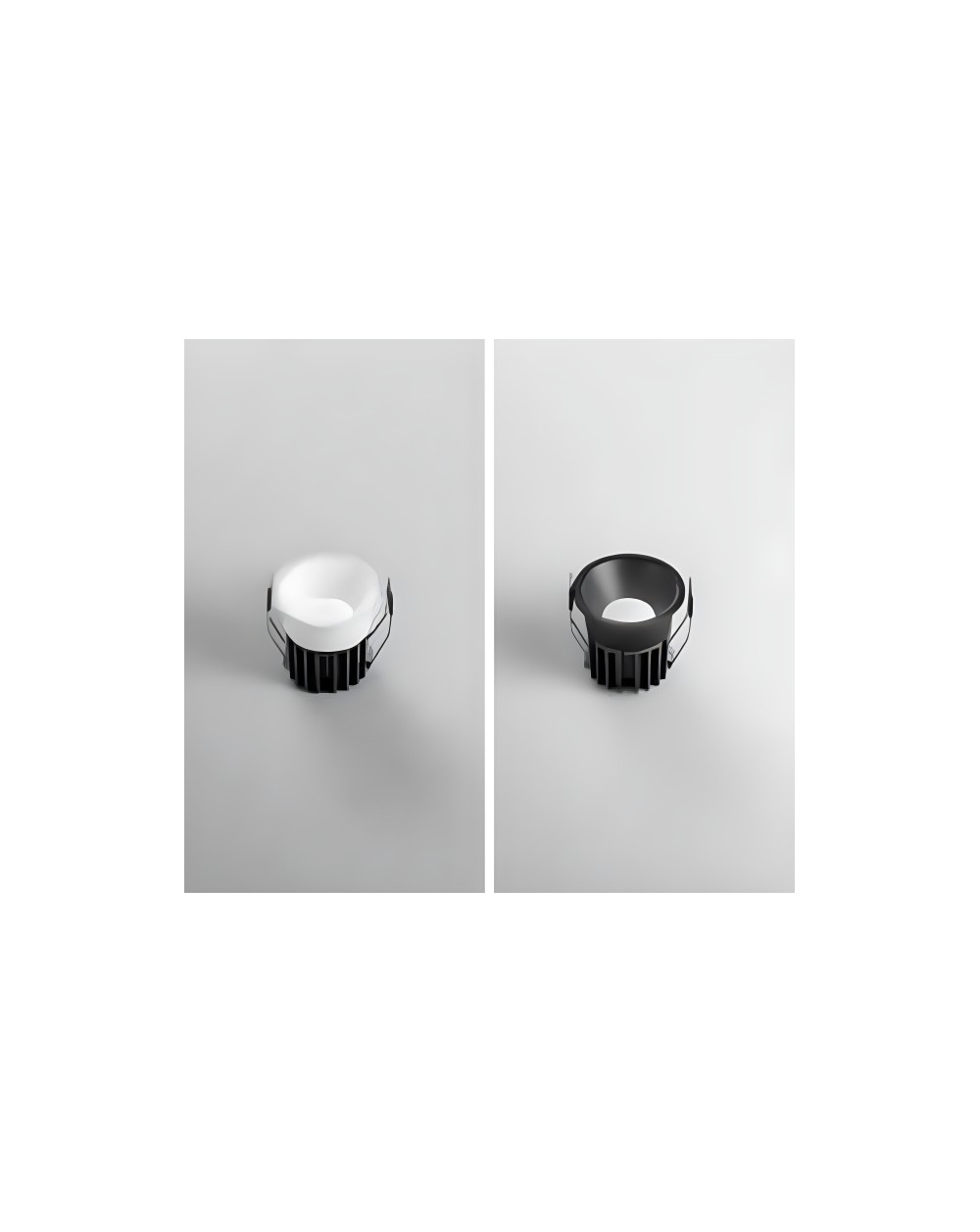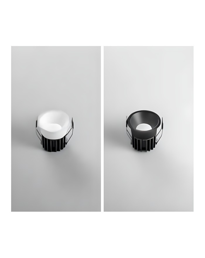 Faretto da incasso con struttura in alluminio antiriflesso e finitura in bianco o nero satinato
