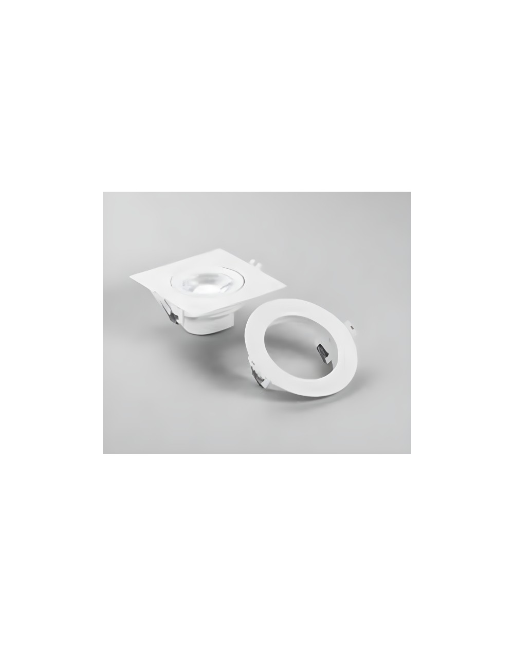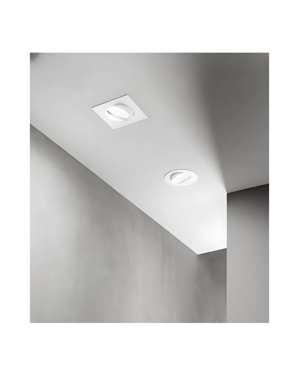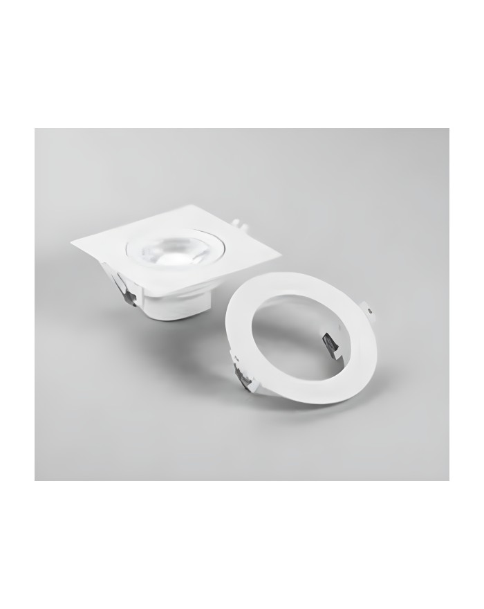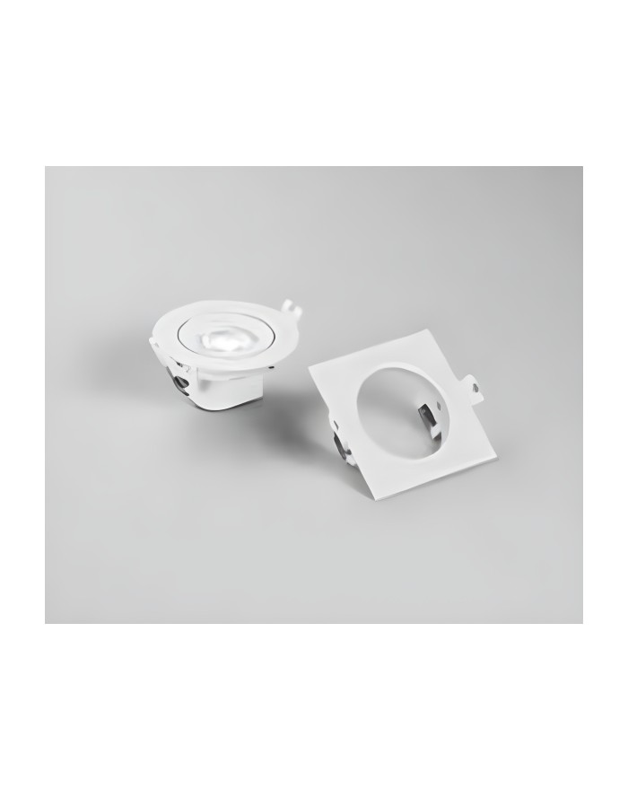 Faretto da incasso con struttura in fibre di plastica e punto luce orientabile.