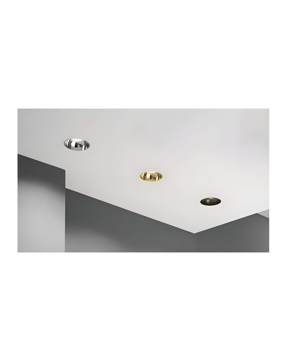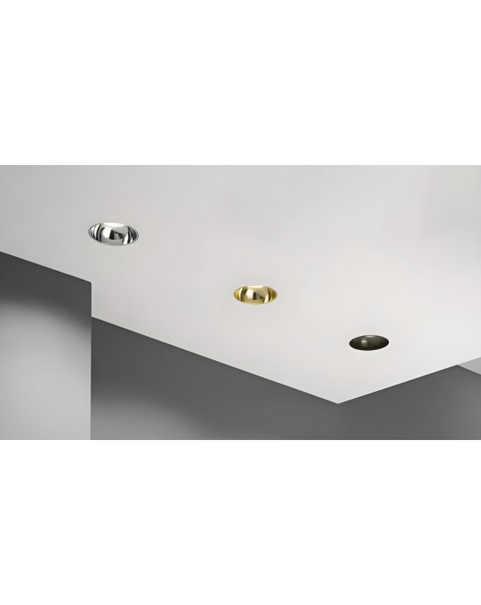 Ghiere intercambiabili per incasso in gesso Identify, in finiture bianco, oro e cromo.