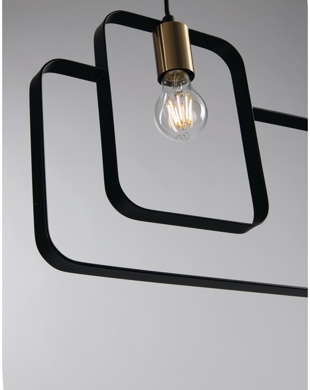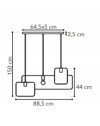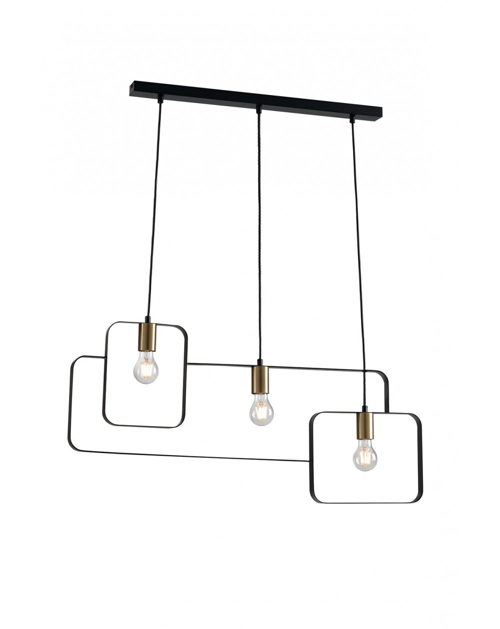 Sospensione 3 luci, disponibile nella versione Nero con porta lampada oro satinato o Bianco con porta lampada cromo