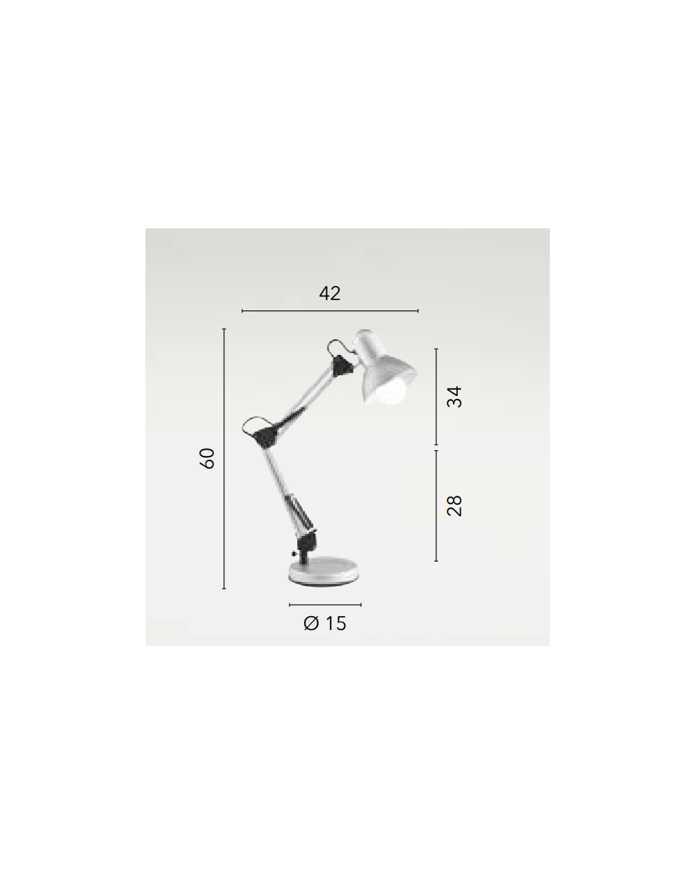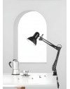 Lampada da lettura con braccio e diffusore orientabile in metallo disponibile in bianco, nero e nichel. Dotata di base da appoggio o pratico fissaggio su tavolo.