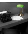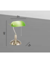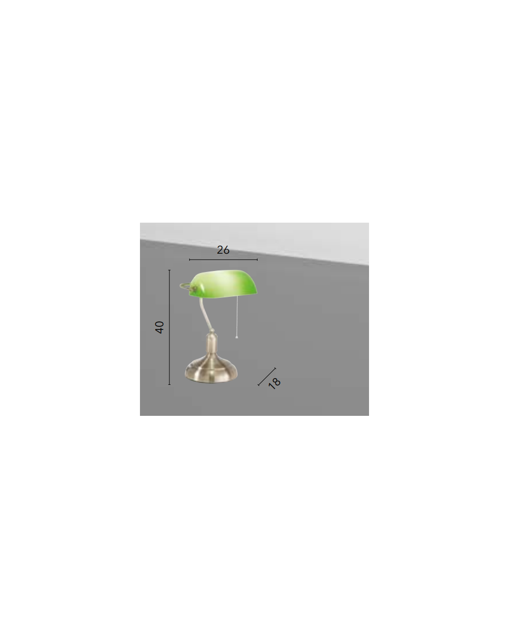 Lume da tavolo in metallo disponibile in nickel con diffusore in vetro bianco latte o bronzo con diffusore in vetro verde.