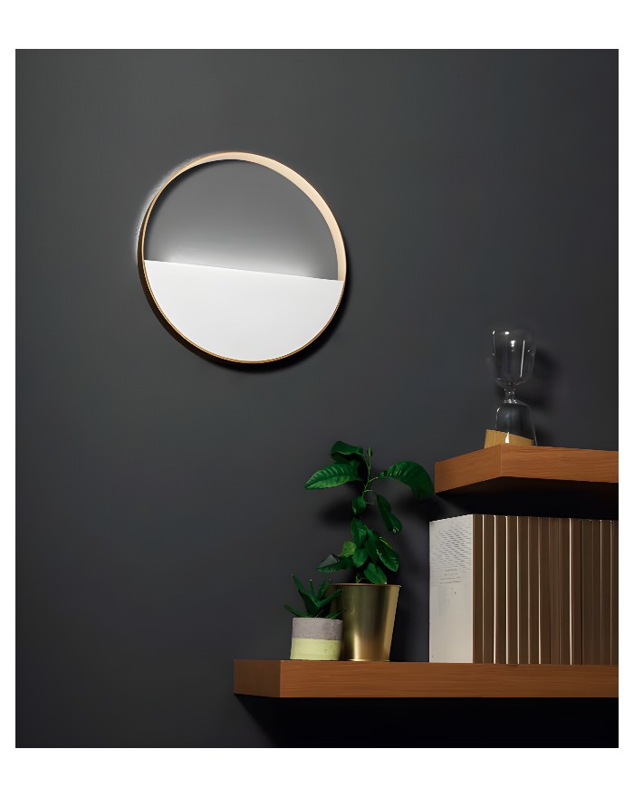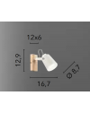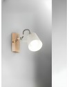 Applique realizzata in metallo con base effetto legno naturale e spot orientabili in bianco opaco.