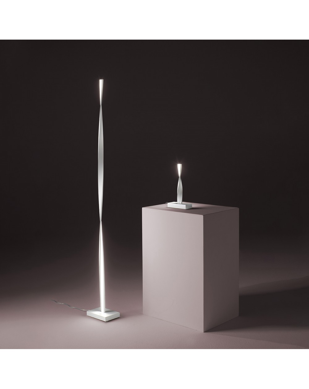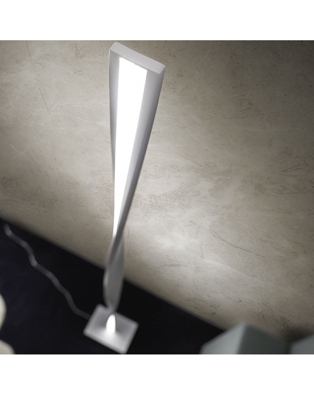 Lampada da terra in metallo verniciato con led integrato e diffusore in acrilico. Disponibile nei colori Bianco, Oro opaco, Nero o Ruggine.