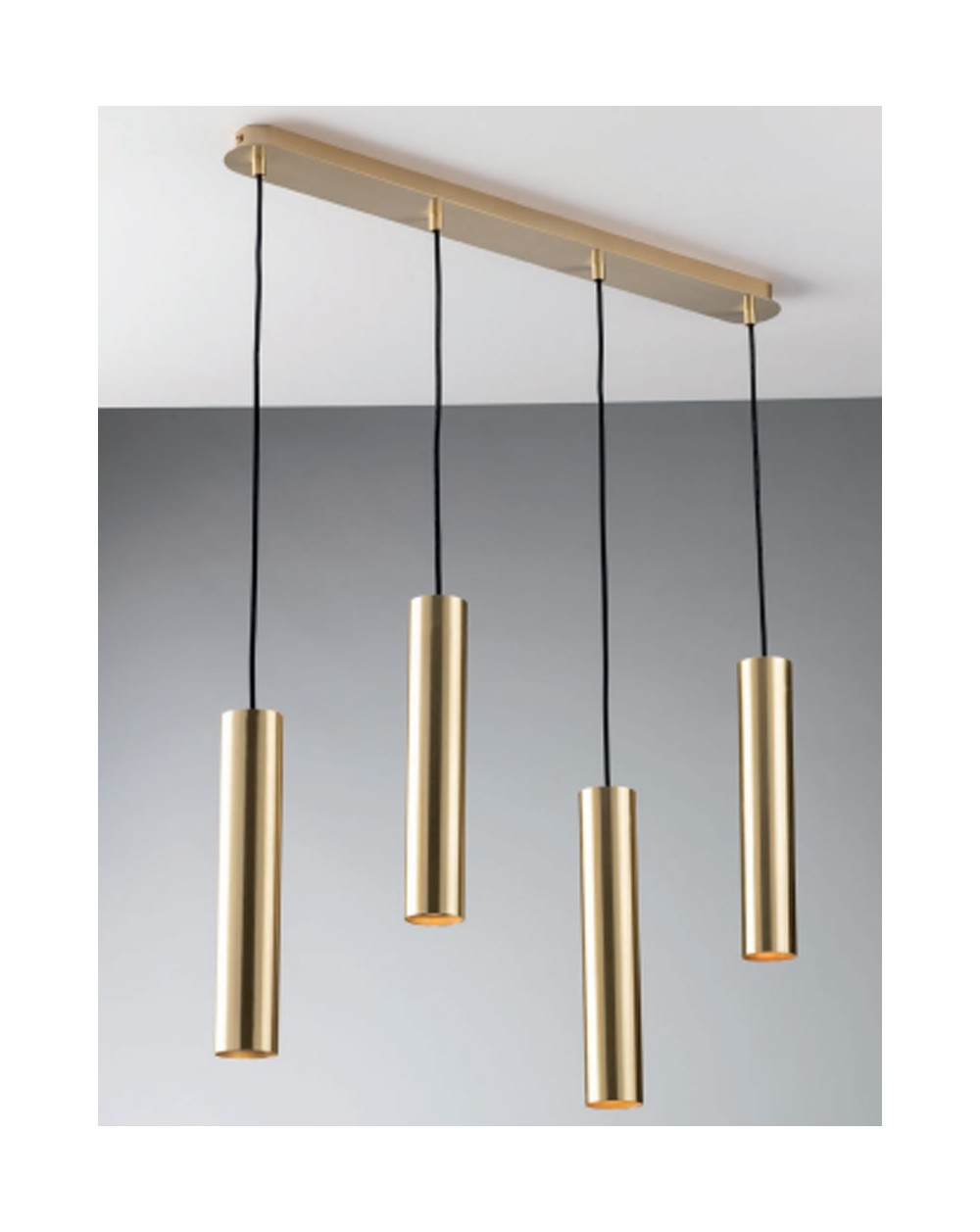 Sospensione 4 luci, in metallo disponibile in tre varianti di colore