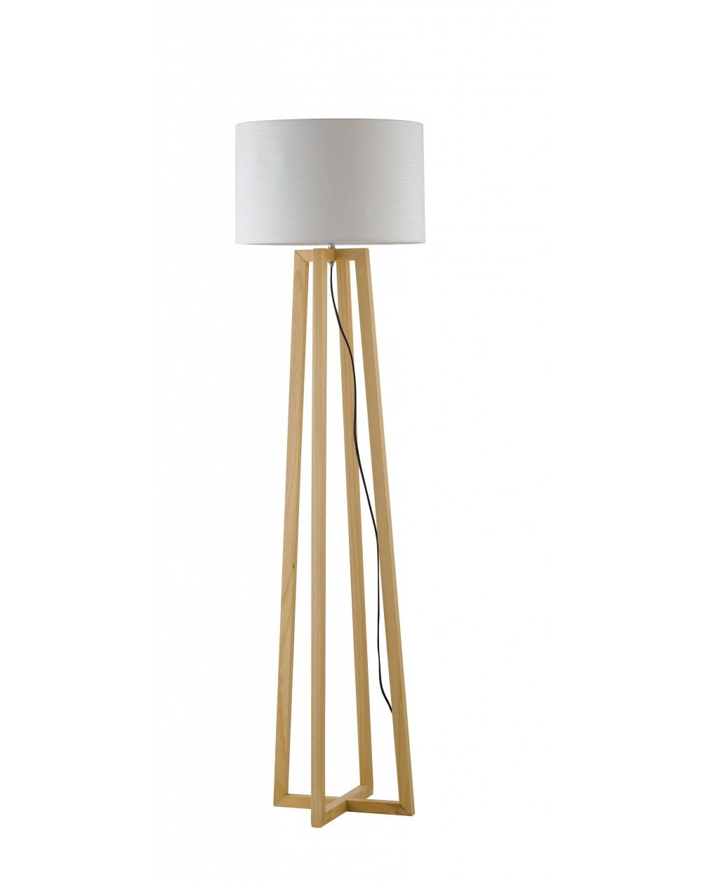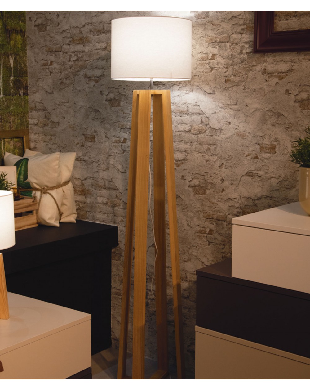 Piantana 1 luce in legno naturale e paralume in tessuto