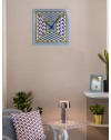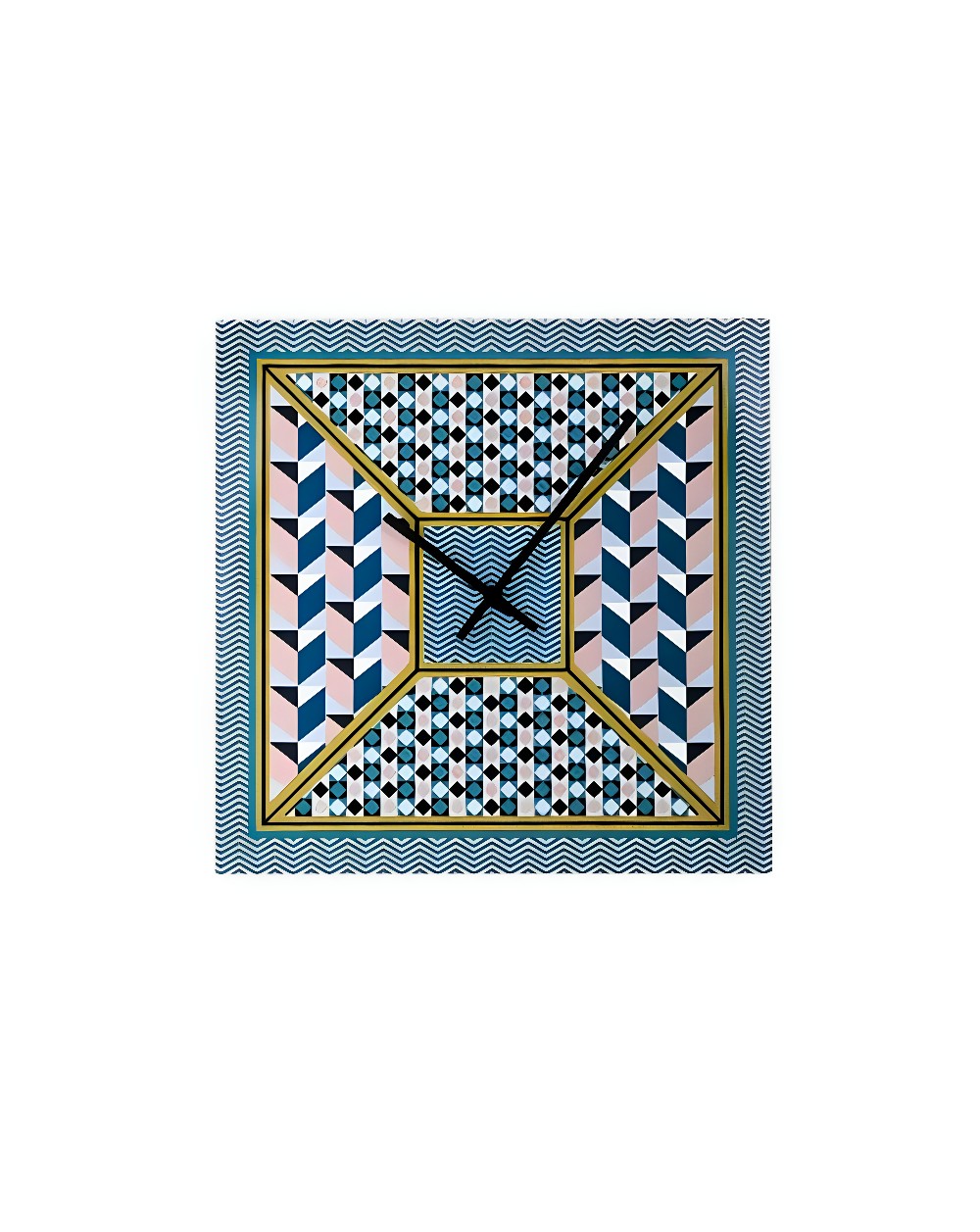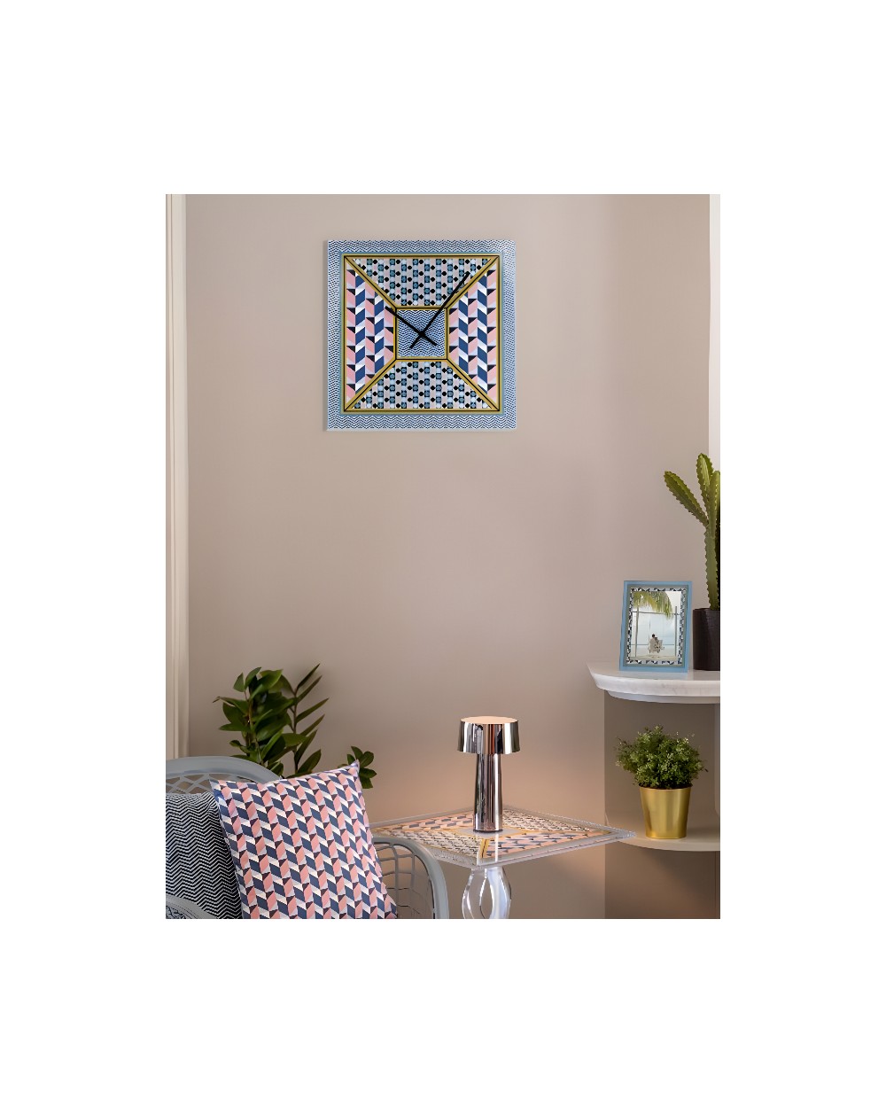 Orologio quadrato in cristallo acrilico, disponibile in due dimensioni e in diverse grafiche decorative.