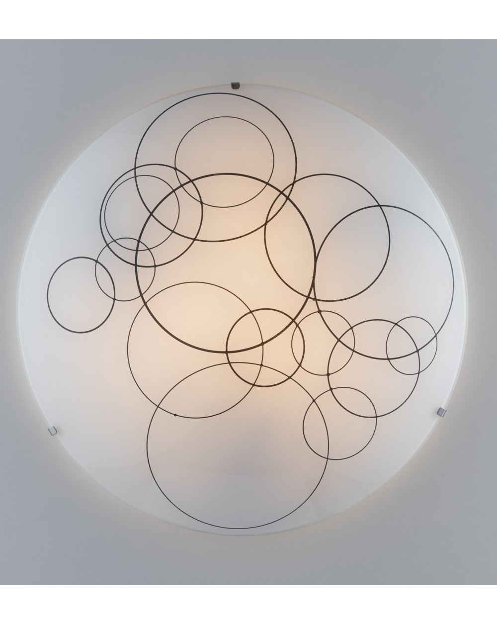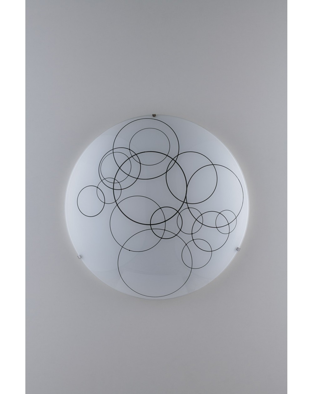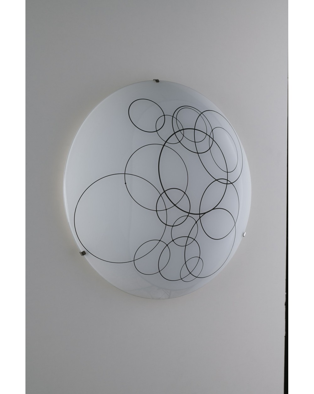 Plafoniera D40 vetro Bianco lucido con decoro cerchi neri