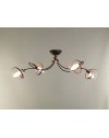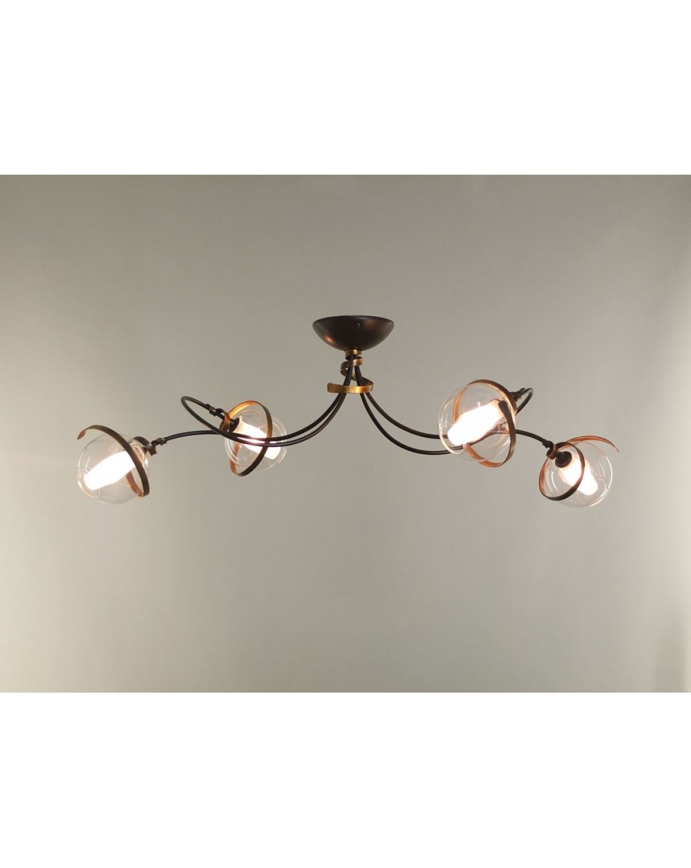 Plafoniera 4 luci in metallo piegato a mano e diffusore in vetro soffiato, disponibile in due colorazioni (Bronzo o Nero/Silver)