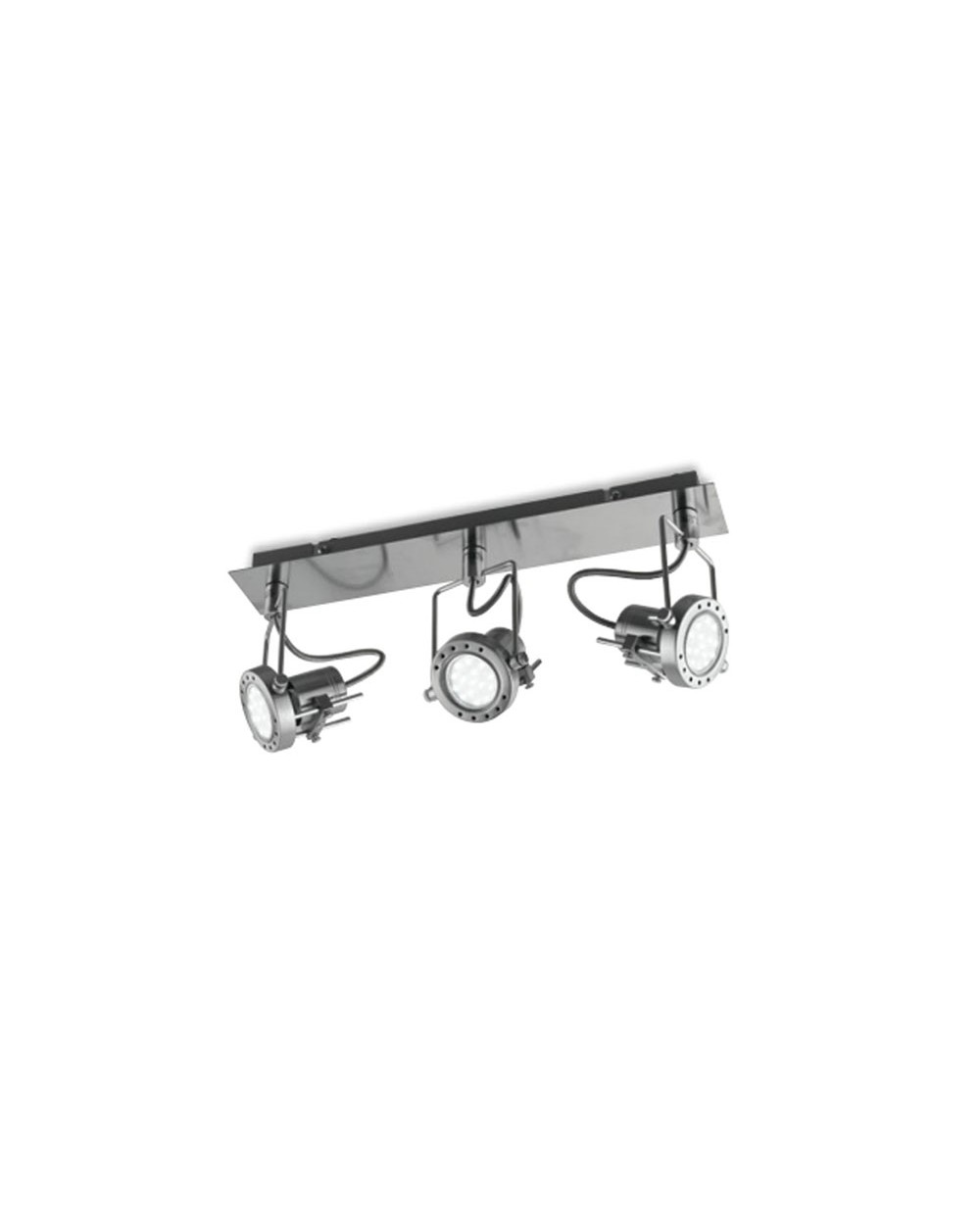 Spot 3 luci orientabili, in metallo color nikel spazzolato.