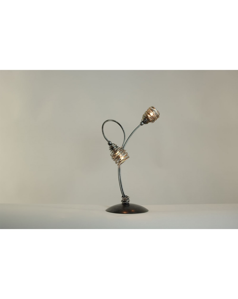 Lampada da tavolo 2 Luci ,piegata e dipinta a mano, in metallo disponibile in due colori a scelta (Tortora-Bianco; Nero-Silver)