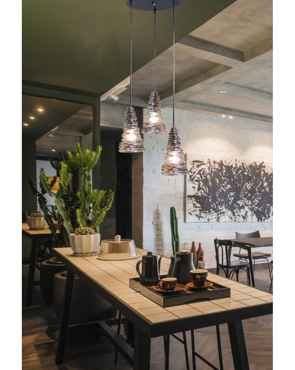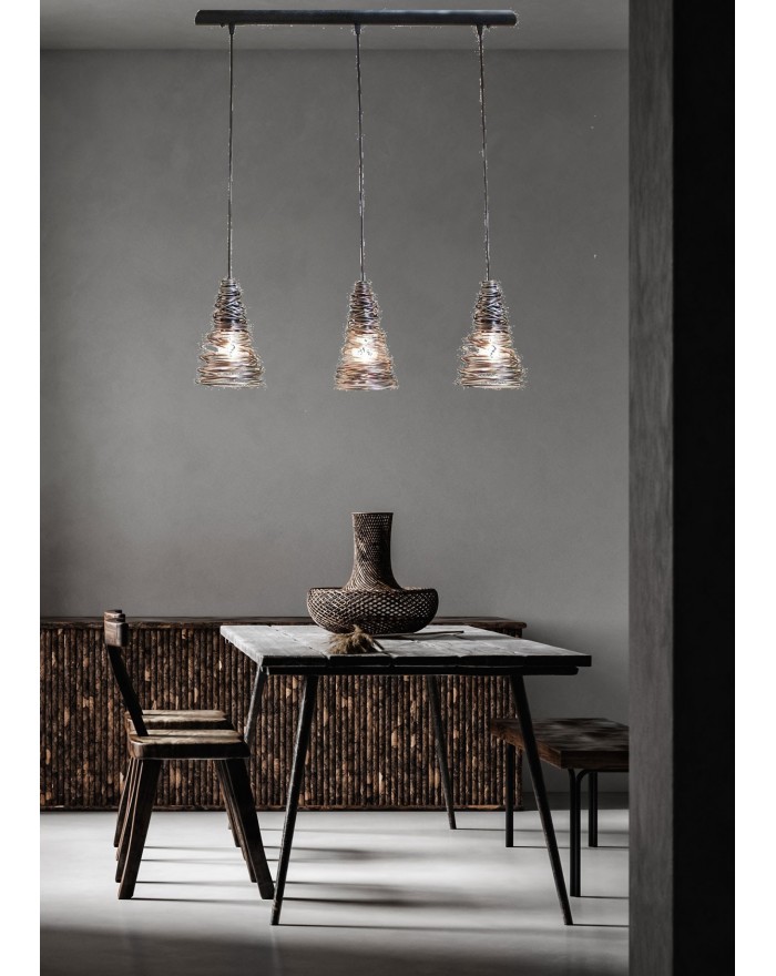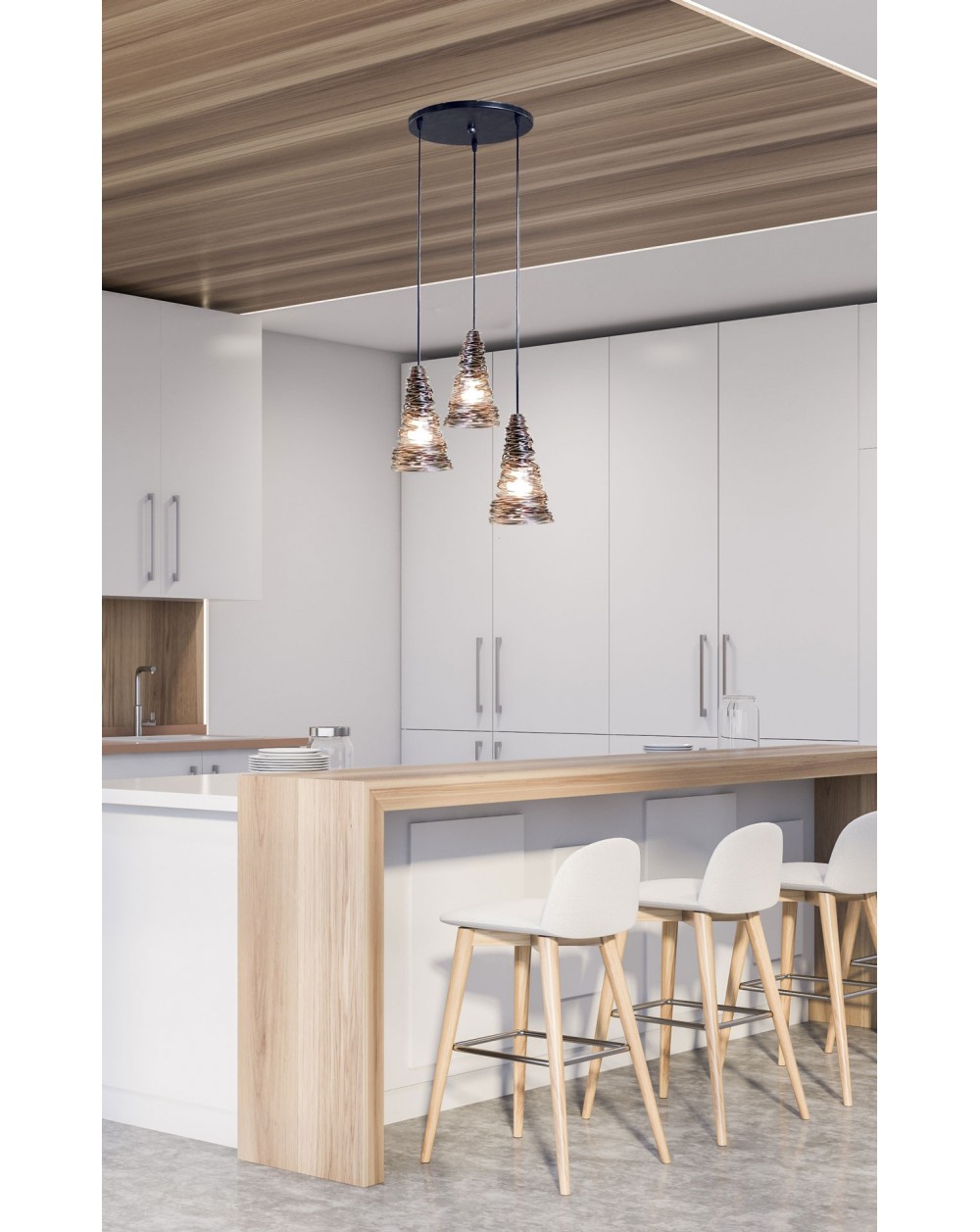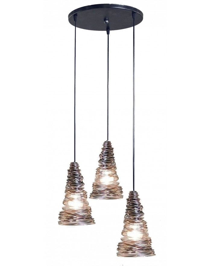 Sospensione 3 Luci base rotonda ,piegata e dipinta a mano, in metallo disponibile in due colori a scelta (Tortora-Bianco; Nero-Silver)